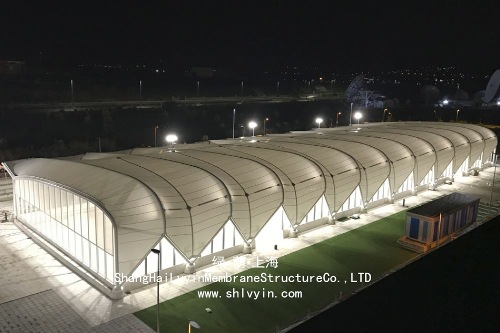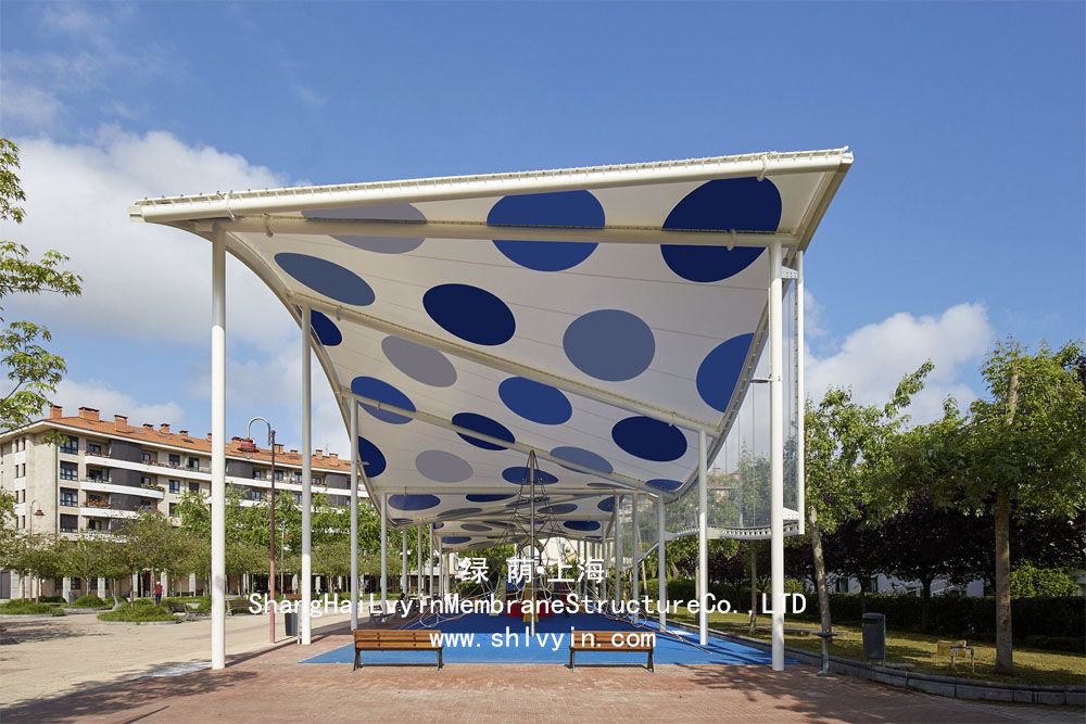 ;綠蔭一直致力于新型產品的開發(fā)與研究。產品內容:建筑膜結構、網(wǎng)球場膜結構、景觀張拉膜結構、汽車棚膜結構、自行車棚膜結構、收費站膜結構、體育場膜結構、看臺膜結構、站臺膜結構、加油站膜結構、鋼膜結構、索膜結構、商業(yè)街膜結構、污水池膜結構、廣場膜結構、入口膜結構、停車場膜結構、屋頂膜結構、走廊膜結構、泳池膜結構、遮陽車棚、膜結構雨棚、園林膜結構、膜結構篷房、張拉膜結構、PVC膜車棚、PTFE膜車棚、ETFE膜車棚、二氧化碳膜車棚、網(wǎng)格膜車棚、帆布車棚、陽光板車棚、膜結構停車棚、公園膜結構、門廳膜結構。在建筑形式與設計方法上不斷創(chuàng)新。從材料采購、加工、制作到產品運輸、現(xiàn)場施工、安裝的全過程都受到嚴格的質量控制。并按照ISO9001質量體系認證標準要求執(zhí)行